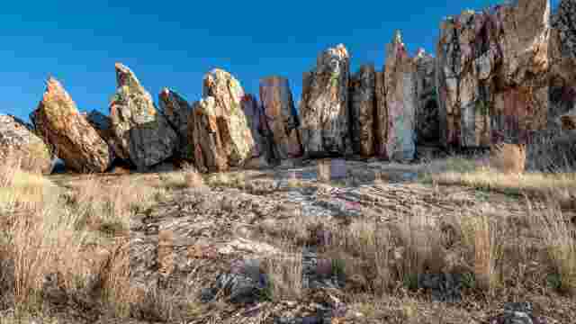 Formación rocosa cuarcítica con forma de fichas de dominó en el cerro de Santa Ana