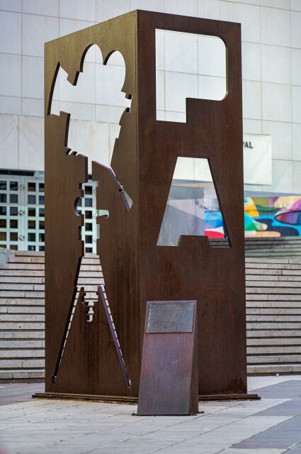 Escultura de acero homenaje a Pedro Almodóvar y a su película Volver