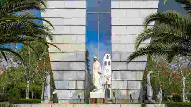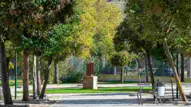 Grupo escultórico de piedra que representa a los caídos en el trabajo. Ubicado ante la iglesia de Santa Bárbara del Poblado