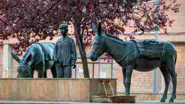 Grupo escultórico que representa al arriero con los burros abrevando en un pilancón