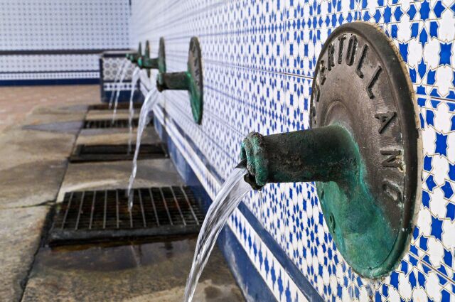 Fuente de agua con cinco caños, proveniente del manantial de la Plaza de la Tercia.