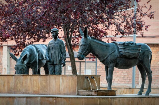 Grupo escultórico que representa al arriero con los burros abrevando en un pilancón