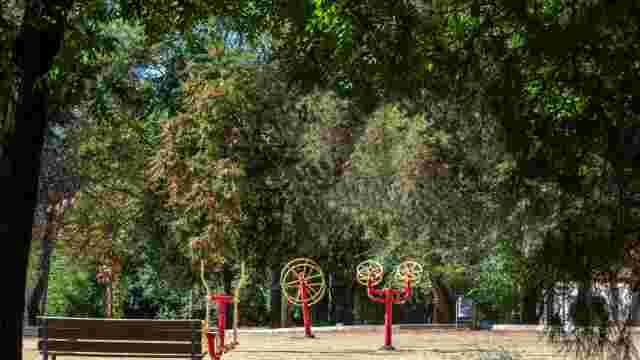Parco urbano con giardini, aree gioco e percorso di sicurezza stradale